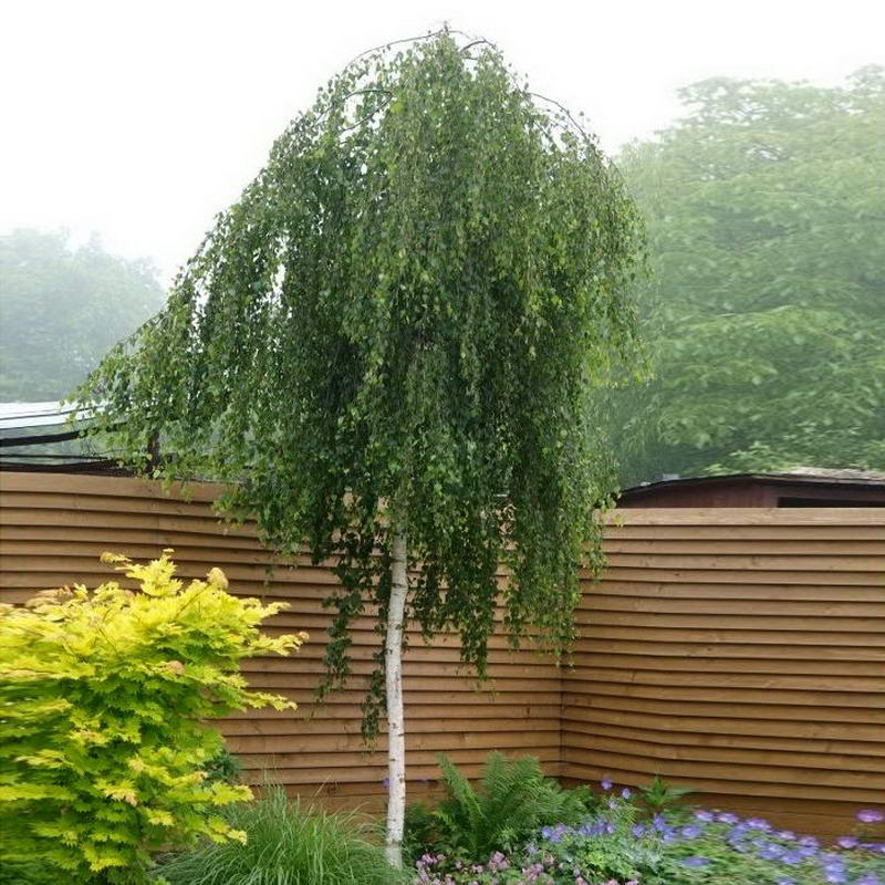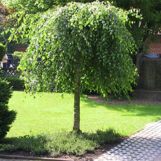 Саженцы берёзы повислой Youngii — аккуратное листопадное деревце, вырастающее не более 4 метров в длину. Клейкие листья имеют заострённую треугольную форму; ветви, склоняющиеся к земле, придают берёзе сходство с зонтиком. В середине весны начинается цветение: появляются первые красивые соцветия — серёжки и медоносны. Молодые побеги имеют нехарактерную для берёз коричневую окраску ствола. Особенности ухода: