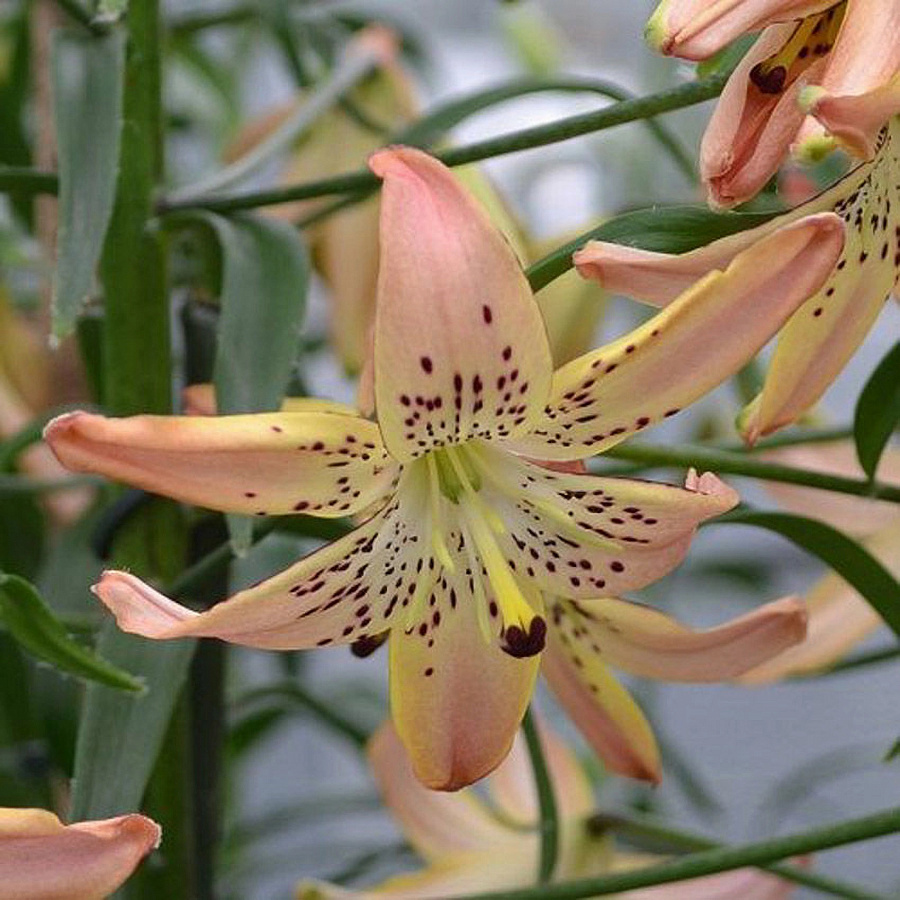 Луковицы лилии азиатской Корсаж (Corsage) могут пополнить коллекцию даже неопытного цветовода. Эта группа сортов неприхотлива, зимостойка, но обладает привлекательным и ярким цветением. Изящный цветок лилии состоит из узких, отогнутых назад лепестков, окрашенных в кремово-розовый оттенок, который становится ярче к кончикам. По всей поверхности бутона рассыпан бордовый крап, придающий цветку особое очарование.