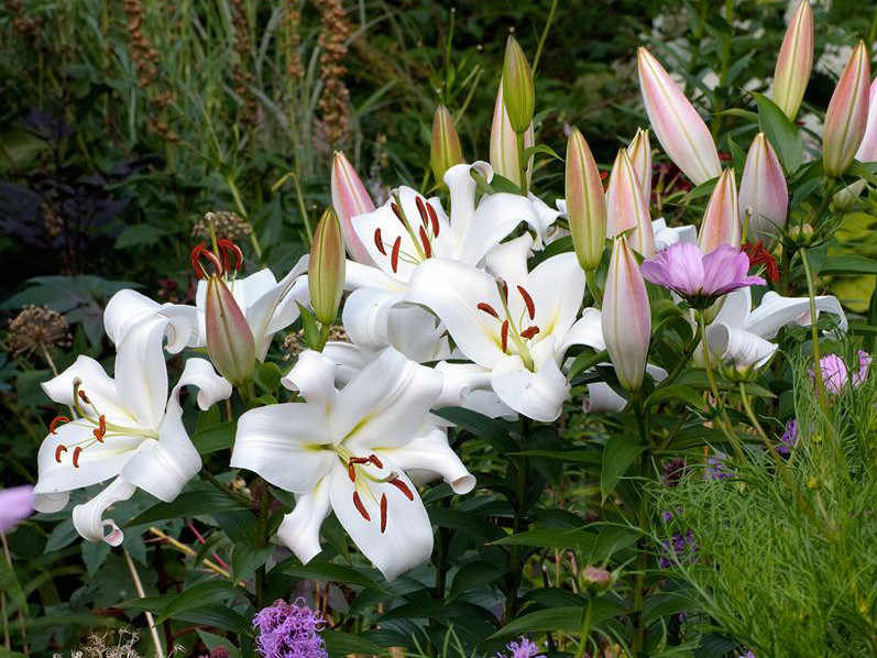 Лилия от-гибрид Замбези - это великолепное растение с чисто белыми цветками, которые привлекают внимание своей изысканной красотой. Высота этого растения может достигать до 120 см, что делает его идеальным для групповых посадок или одиночных высаживаний. Лилия от-гибрид Замбези предпочитает солнечные участки с полутенью, а также дренированные богатые почвы.