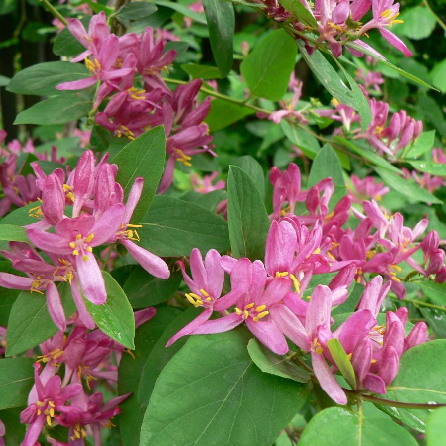 Саженцы жимолости татарской Розеа (Rosea) идеально подходят для создания живой изгороди и высадки в городских условиях (растение легко переносит загазованный воздух). Мощный куст с шаровидной кроной достигает высоты 3,5 метра и 2 метра в поперечнике. Листва густая, заостренная, ярко-зеленого оттенка. Цветет в мае на протяжении месяца ярко-розовыми мелкими цветочками - колокольчиками, собранными в пучковые соцветия. Цветущая жимолость издает прекрасный аромат, привлекающий в сад насекомых. Растение исключительно неприхотливо: засухоустойчиво, растет как на солнце, так и в полутени, морозостойко, почти не болеет. Кустарник является неотъемлемой частью композиций в природном стиле, эффектно выглядит в качестве солитера.